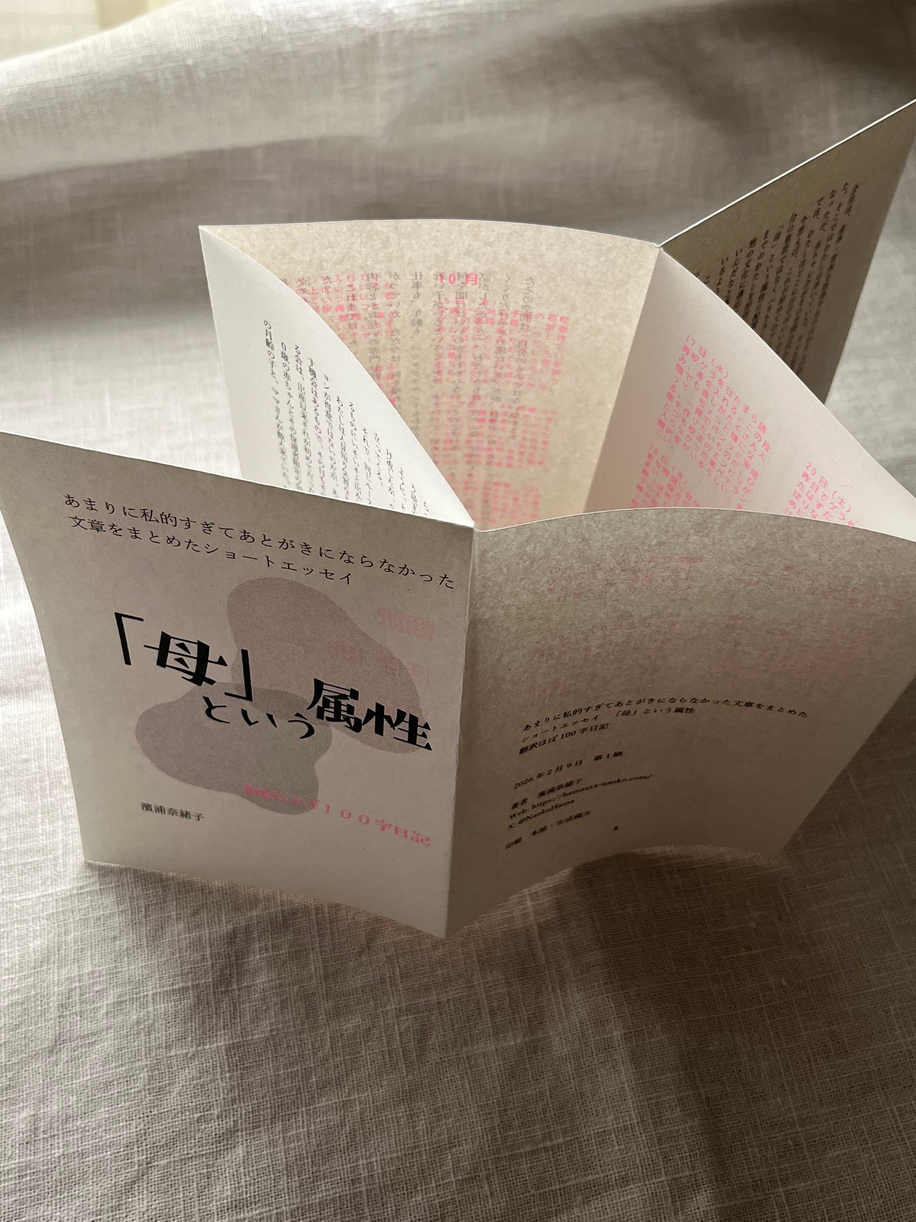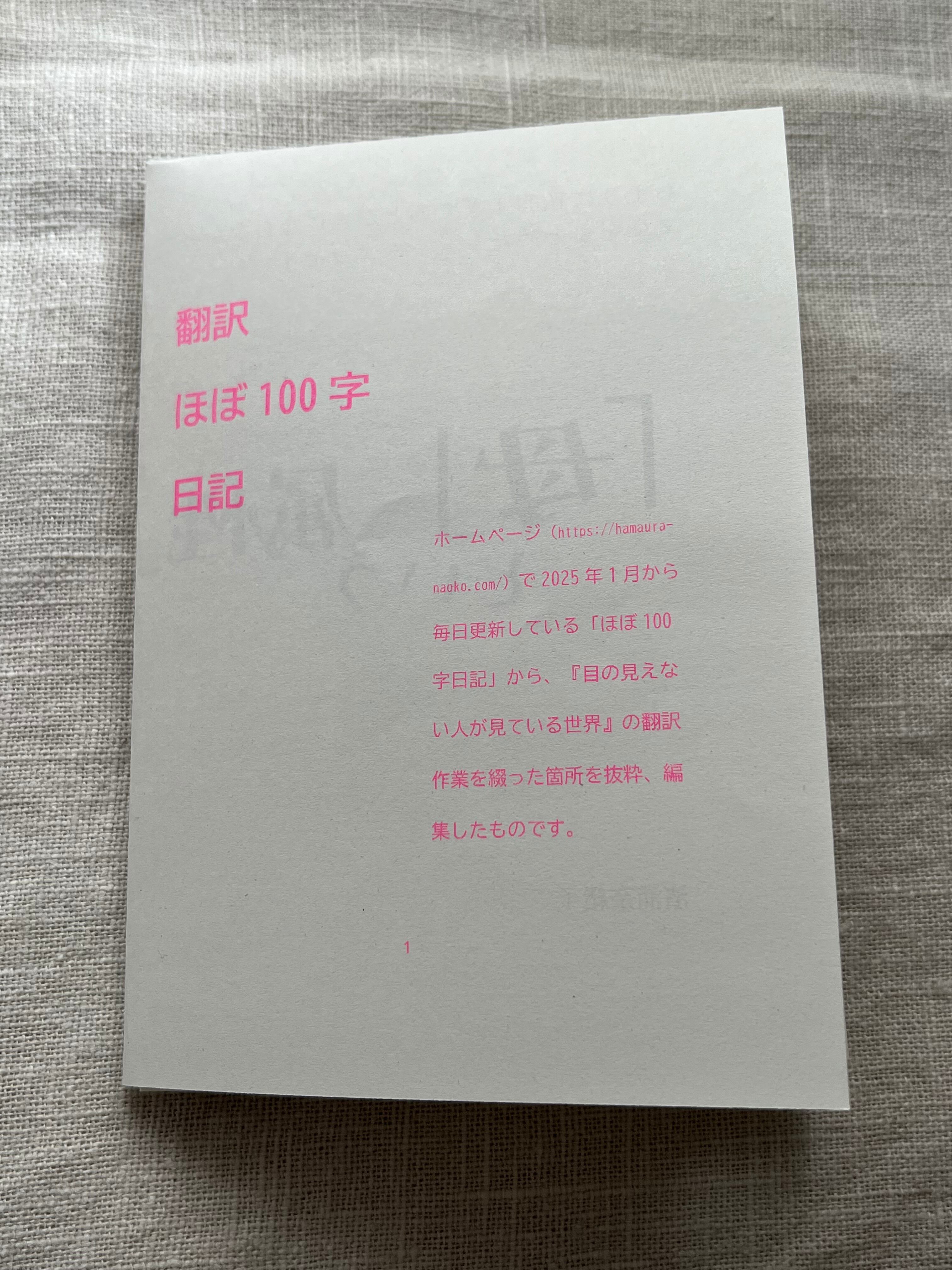 リバーシブルの折本(A6サイズ)です。裏面は、『目の見えない人が見ている世界』の翻訳作業について書いた日記を抜粋したものをまとめました。
